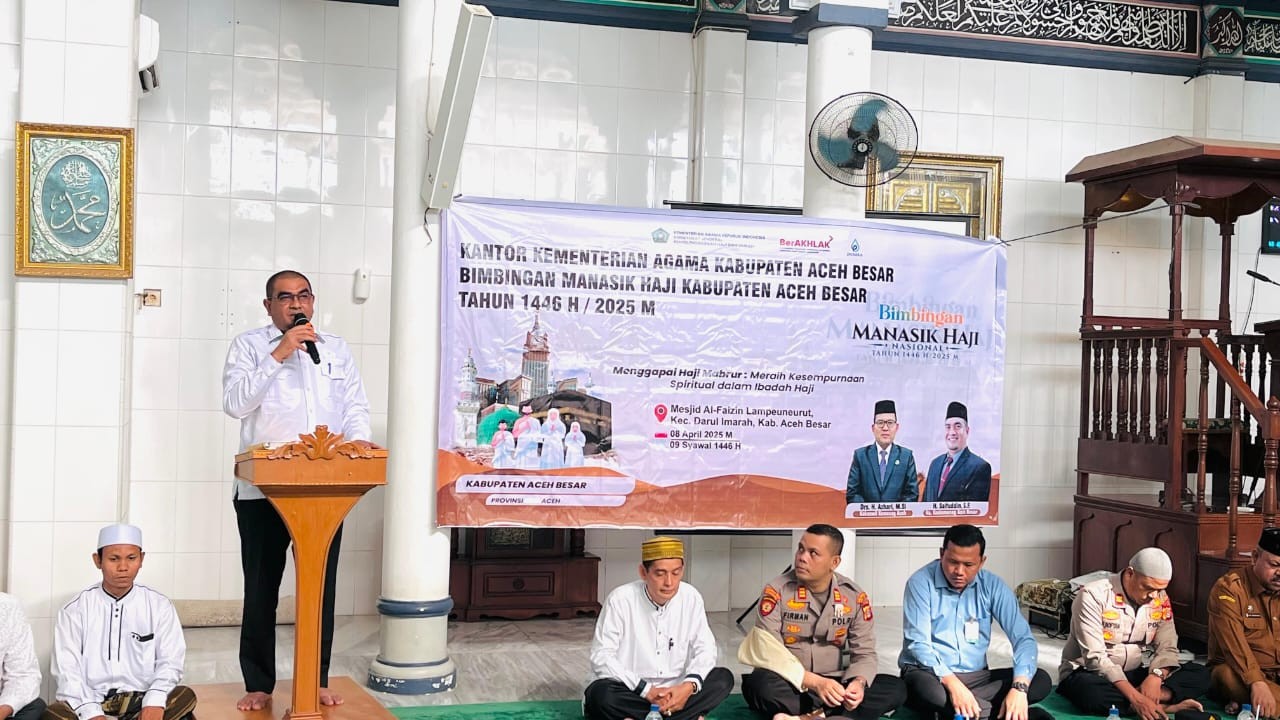 Hal tersebut dikatakan Kakankemenag Aceh Besar Saifuddin pada Pembukaan kegiatan Bimbingan Manasik Haji Kabupaten Aceh Besar Tahun 1446H/2025 M, di Masjid Al-Faizin Lampeuneurut Aceh Besar, Selasa (08/04/2025).